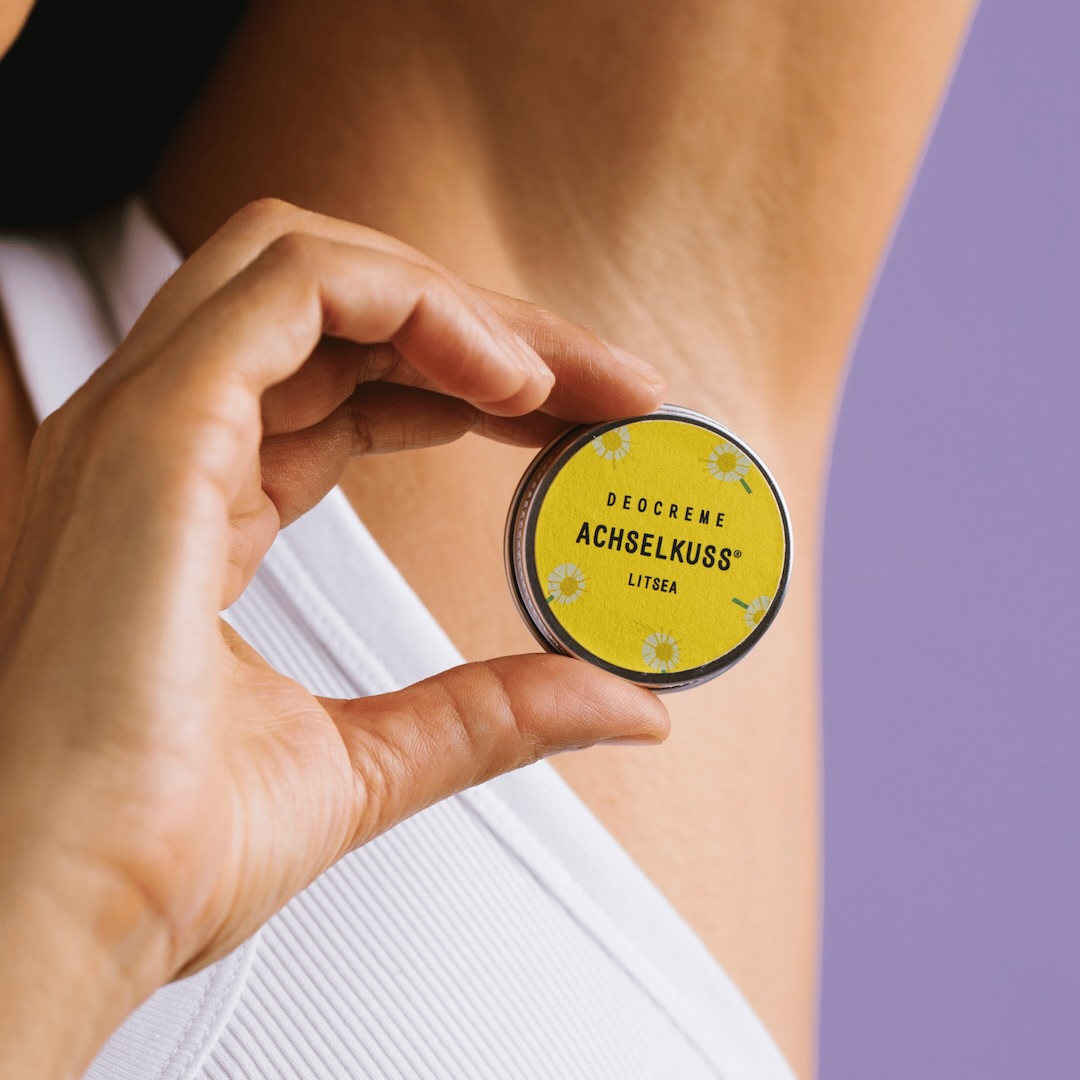 ACHSELKUSS Deocreme Litsea ist eine natürliche Deocreme, die zuverlässig bis zu 24 Stunden vor Geruchsbildung schützt. Das vegane Deo überzeugt alle Liebhaber*innen von frischen Zitrusdüften: Der Duft des ätherischen Litsea-Öls in Kombination mit ätherischem Zitronenöl gilt wohl als der Lebensfreude-Duft schlechthin.