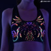 Top Active UV „Supernatural“ – dieses Active-Wear BH-Top aus atmungsaktivem Material von Public Beta Wear ist schnell trocknend und bequem, mit elastischem Besatz unter der Brust und schwarzlicht-Reaktivdruck.