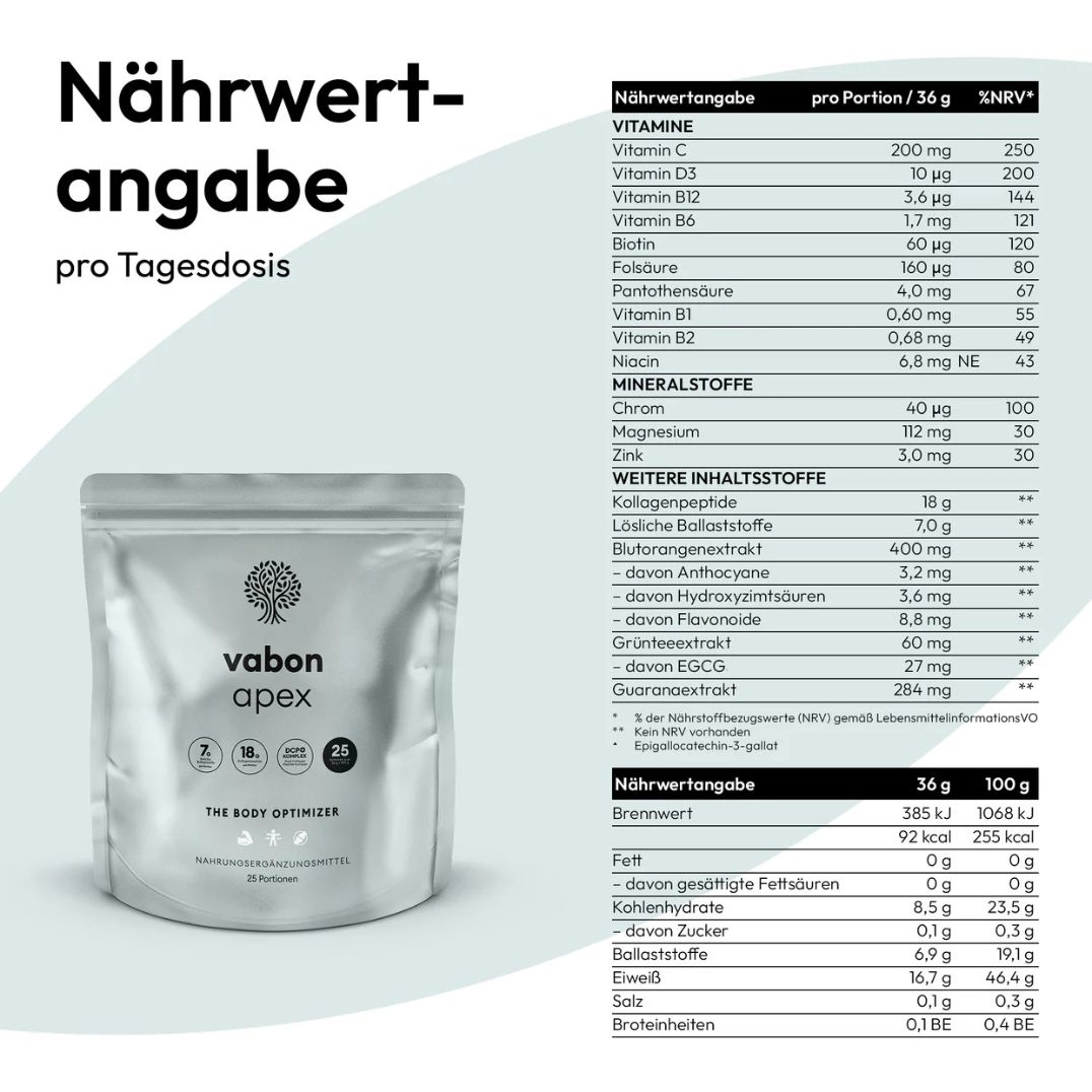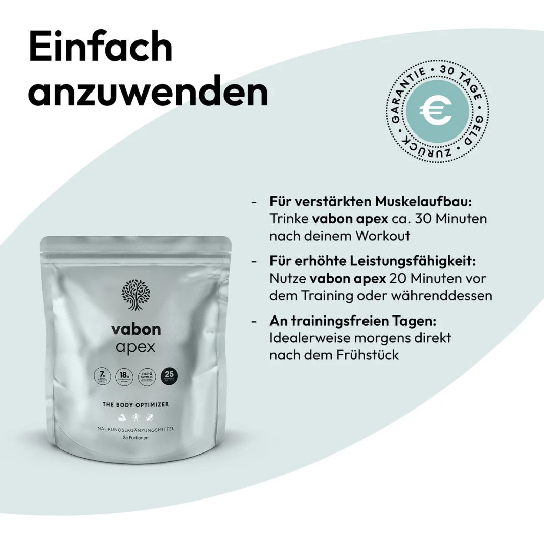 Mach VABO-N APEX – THE BODY OPTIMIZER zu deinem körperbewussten All-in-one Drink für mehr Muskelaufbau, Fettabbau, maximierten Trainingserfolg und für deine Gelenke.
