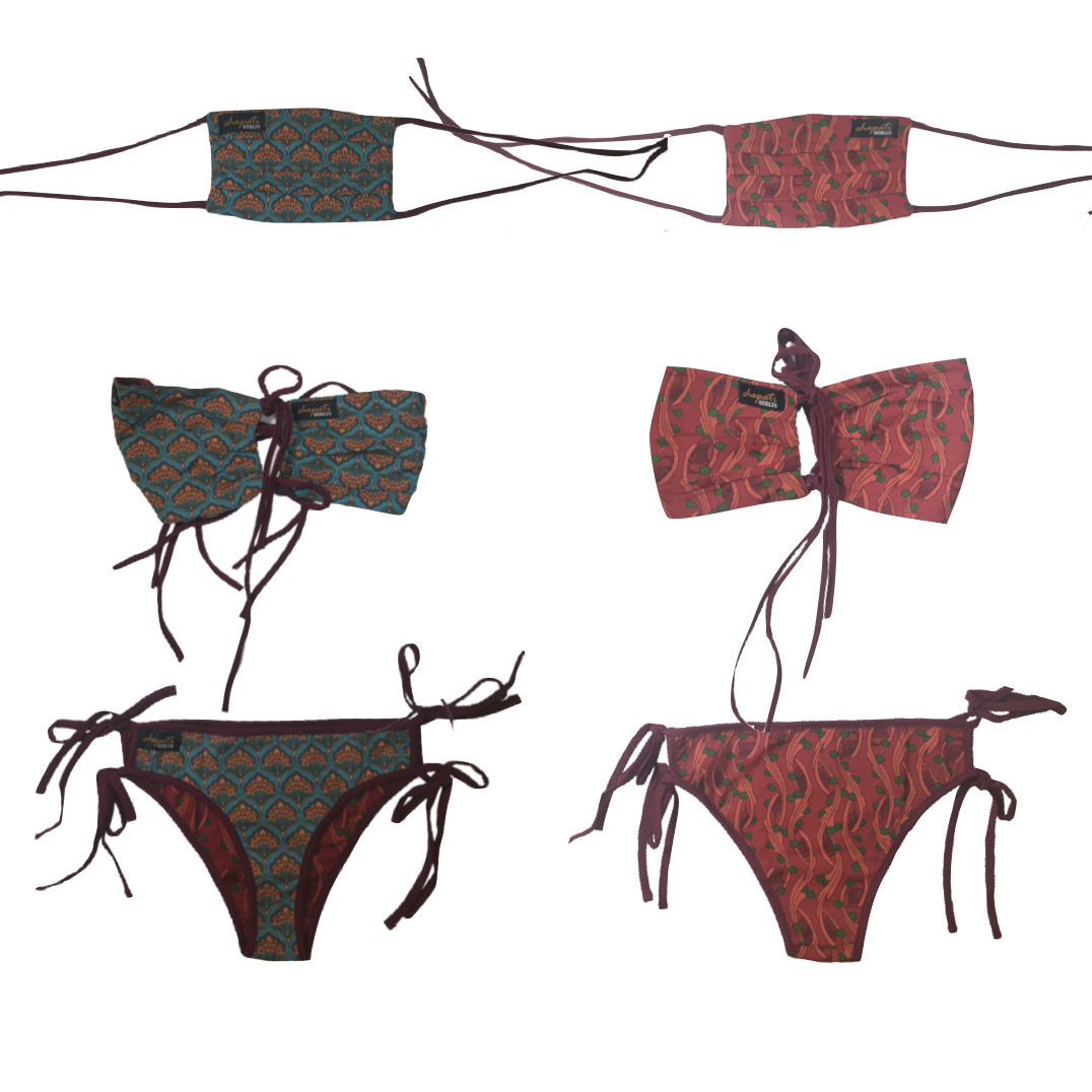 Sowohl die Chapati Design Community Masken, als auch die Slips im Trikini sind wendbar! Beide Seiten der Masken unterscheiden sich in Farbe & Muster und sind auf die Styles unserer aktuellen Sommer- Kollektion abgestimmt.