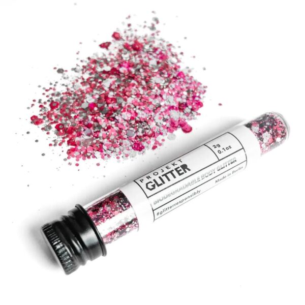 Der in Deutschland aus natürlichen Pflanzenfilmen hergestellte Glitzer ist biologisch abbaubar. Dies bedeutet, dass es für die Umwelt genauso sicher ist wie für Gesicht, Körper und Haare.