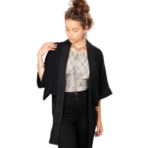 Cardigan „Atar“ Grey – Hab keine Angst, deine Kräfte zu offenbaren und gehe mit Vertrauen auf dem Pfad des Lebens. Ein super lockeres, langes und sehr bequemes Unisex-Teil. Eine wilde, zauberhaft geschnittene Wickeljacke in Mantellänge mit Kapuze – wie gemacht, um deine innere Flamme in den kalten Tagen zu schützen.