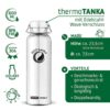Die thermoTANKA Edelstahl Thermosflasche ist eine doppelwandige, auf Vakuum gezogene isolierende Edelstahl Trinkflasche, die Getränke lange heiß oder kalt hält! Sie ist die umweltfreundliche Alternative zu Einweg to Go Bechern: Einfach deinen „Lieblingskaffee“, Tee oder Kakao von zu Hause in die Firma, die Schule den Kindergarten mitnehmen und vor Ort genießen.