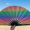 Fächer XL „Rainbow Glitter“ – entweder ganz oder gar nicht – dieser XL-Fächer mit 33 cm Durchmesser von Fantasticofans Ibiza setzt ein Statement.