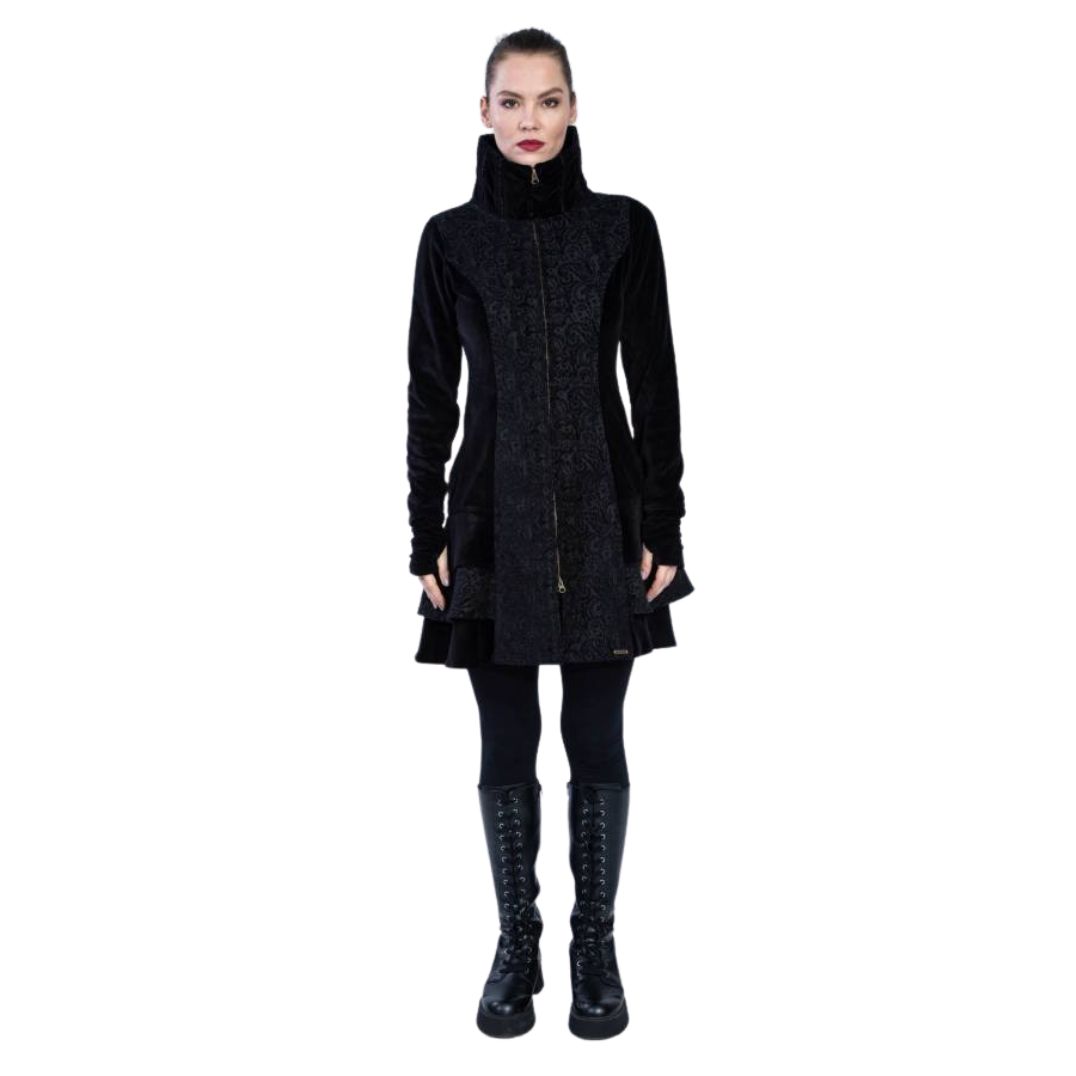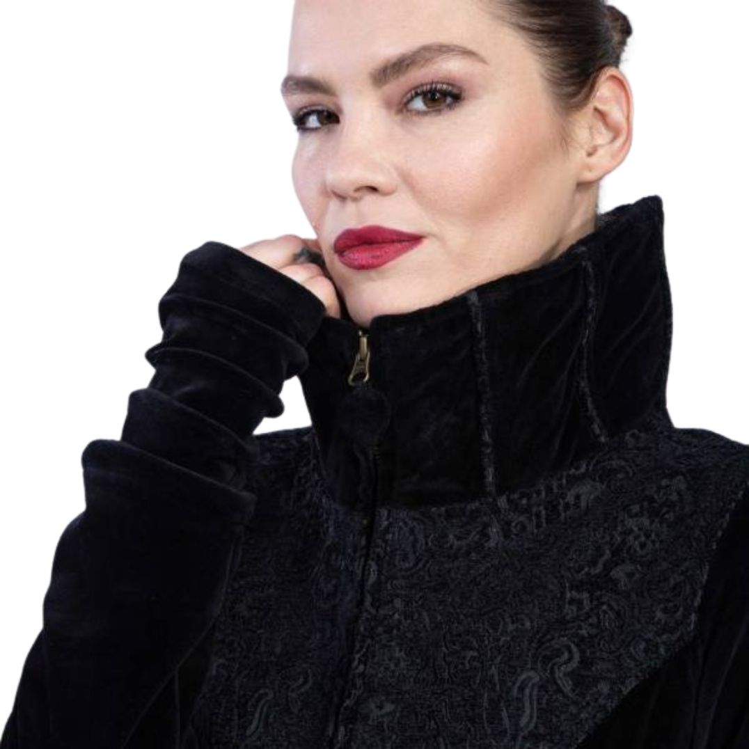 Der Kurzmantel „Medina“ Black besteht aus Brokat und Samt.