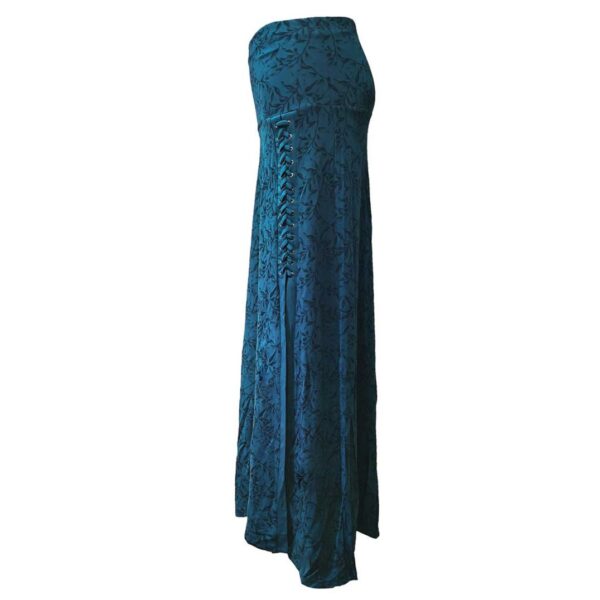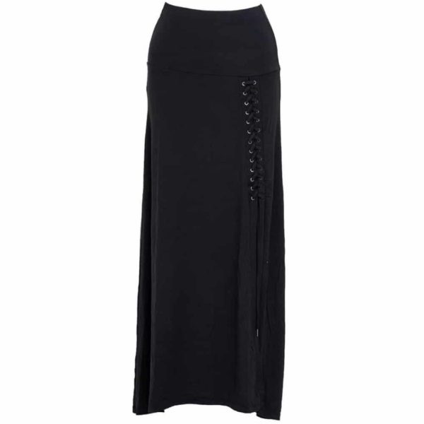 Schlanker, langer Rock von Nomads Hempwear mit einem Schlitz, der bis zum oberen Ende geschnürt wird.