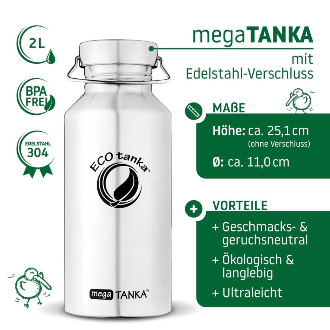 megaTANKA™ 2,0l – die größte Edelstahl Trinkflasche von ECOtanka™. Verschluss bitte extra bestellen!