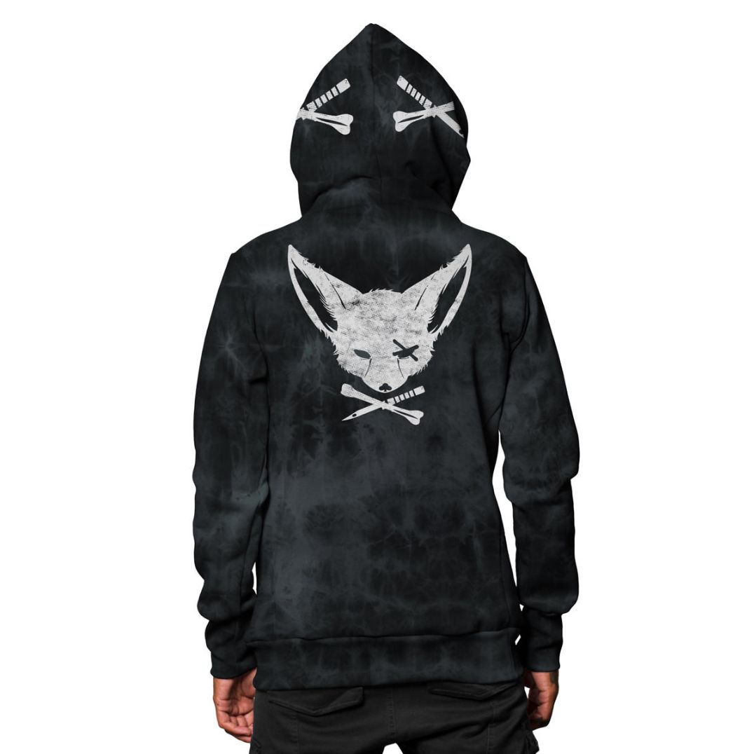 Diese spezielle foxy-Version von Plazmalab ist ein großartiger Hoodie mit extra großer Kapuze für das heutige urbane Leben. 2 Knochen auf der Kapuze, Fuchskopf auf der Rückseite.