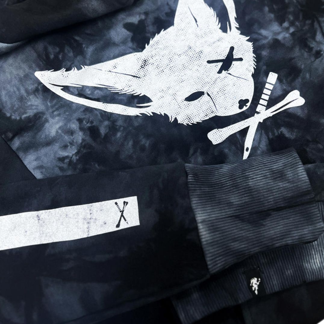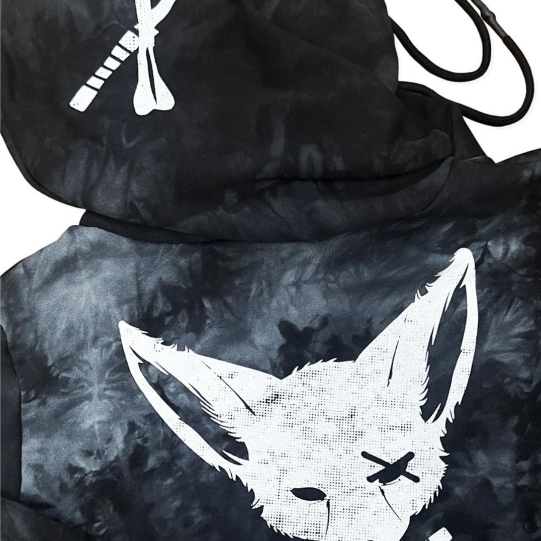 Pullover „Twizy“ Black Tie-Dye – in unserer Plazmalab -Welt hat unsere foxy lady Twizy, den Fuchs, in ihrer einzigartigen Kollektion vorgestellt. Diese besondere foxy-Version ist ein großartiger Hoodie für das heutige urbane Leben. 2 Knochen auf der Kapuze, Fuchskopf auf der Rückseite. Jedes Stück ist ein Unikat und von Hand koloriert.