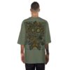 • Shirt „Forever Grateful“ Oliv  – das Sonnenblumenmotiv auf dem übergroßes Drop-Shoulder-Teil ist ein komplexes Symbol der Natur und der psychedelischen Vision. Ihre leuchtenden Blütenblätter strahlen nach außen und ahmen die Energie der Sonne nach, die für Wachstum, Vitalität und kosmische Verbindung steht. Die detaillierten Strichzeichnungen fangen die organische Schönheit der Blume ein, während sie gleichzeitig Elemente der sakralen Geometrie einflechten und der sonst so vertrauten Blüte weitere Bedeutungsebenen hinzufügen. Die Sonnenblume, die oft als Symbol für Dankbarkeit und Positivität gilt, wird hier auf eine Weise neu interpretiert, die sowohl spirituelle Tiefe als auch künstlerischen Ausdruck verkörpert.