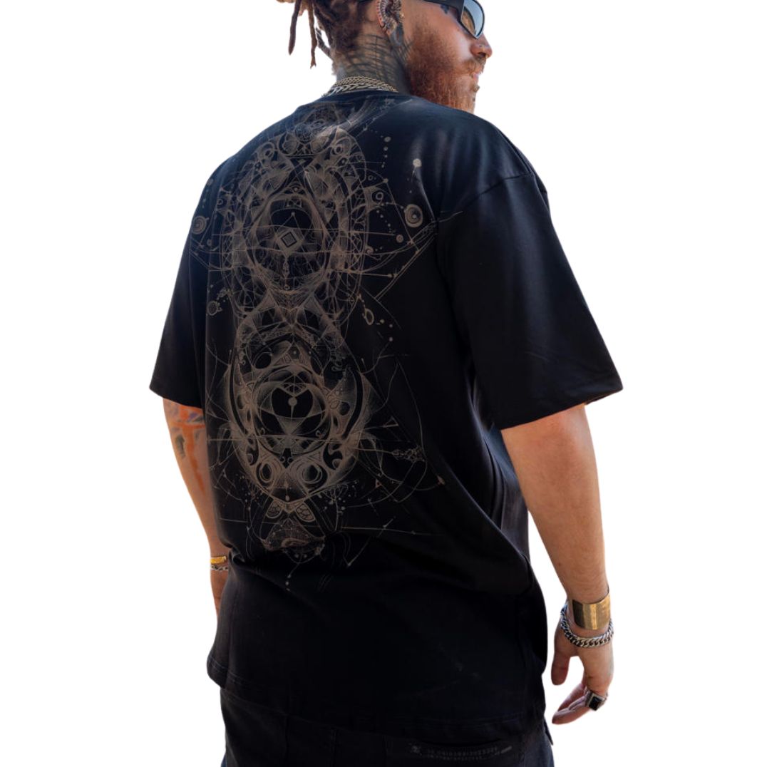 Das Shirt Oversize „Ornament“ Black ist ein visuell fesselndes, übergroßes Drop-Shoulder-Teil, welches ein originelles, psychedelisch inspiriertes Artwork präsentiert. ieses Shirt ist perfekt für alle, die sowohl alternative Mode als auch kreativen Selbstausdruck schätzen, und eignet sich daher ideal für Festivals oder den Alltag auf der Straße.