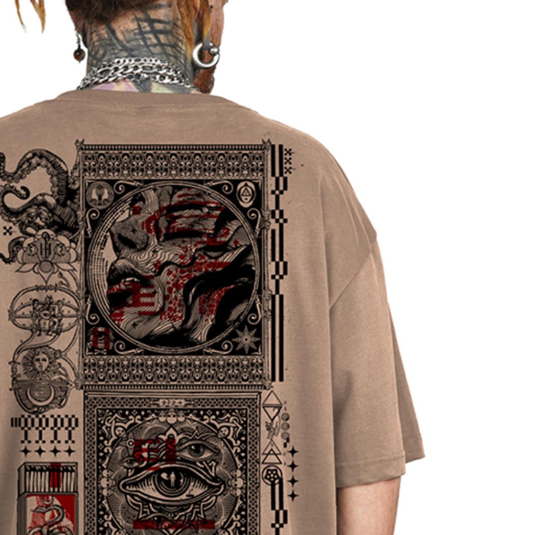 Ein visuell fesselndes, übergroßes Drop-Shoulder-Teil, welches ein originelles, psychedelisch inspiriertes Artwork präsentiert.
