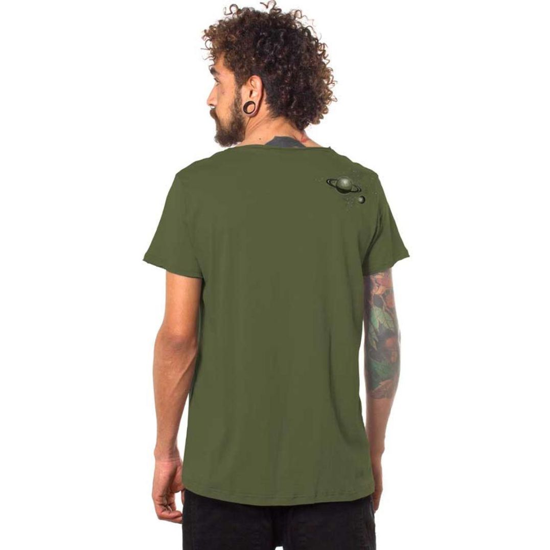 Das T-Shirt „Saboosh“ Oliv besteht aus Single Jersey 100% Baumwolle 170gr.