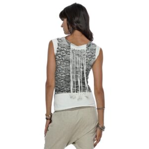Der lockere Torso, der ausgebeulte untere Saum und die etwas höhere Rückenpartie machen dieses Tank zu einem echten Hingucker.